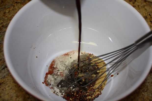 Lávese las manos y tazón de fuente bien entonces Comience agregando todos los ingredientes (menos la carne) en un tazón grande. Separar bien las rebanadas de carne de res, ya que tienden a volver a congelar juntos en una pila y añadir la carne de vaca a la taza unas rebanadas a la vez siguieron mezclando a mano. Asegúrese de que toda su carne se cubrió bien.