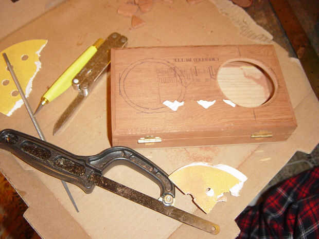 Primero traté de hacerlo desde el interior porque quería ser capaz de ver los lados de la caja; sin embargo, cortar los agujeros desde el interior corre el riesgo de partir la cara de la caja.