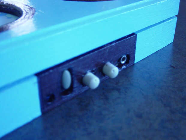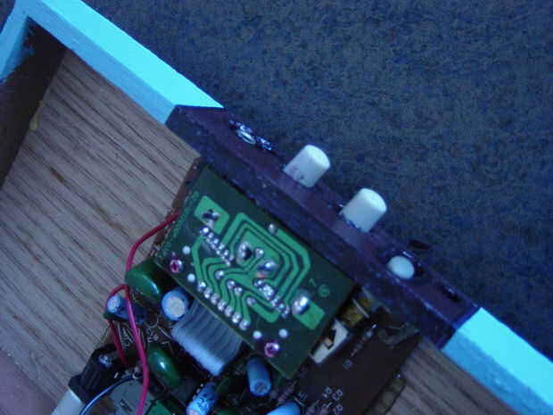 Esto, en última instancia, se realizó a través de ensayo y error. Montón de errores! Los botones de agudos y volumen fueron en ángulo, por lo que no podía perforar agujeros rectos, y luego los conectores LED y auriculares en bits extendidos del tablero de circuito, superior de los botones y el botón de encendido.