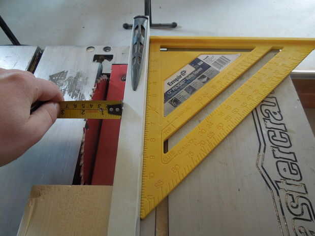 Si vas a poner en las tapas del lado decorativo, necesitarás 2 piezas de 2 x 4 x 8 y rip que ambos hacia abajo en la tabla VI. Cada uno necesita de 2 x 4 para ser descuartizado (es decir, rasgado por la mitad a lo largo de la parte 3 1/2 pulgada y luego rasgó por la mitad otra vez en el lado de 1 1/2). Esto debería darte 4 piezas que son 1 11/16 x 11/16 pulgadas, si usted tiene una lámina ancha de 1/8 como lo hago. Configurar la tabla vio mediante el uso de la viga de cuadrado a cuadrado encima de la valla y una cinta métrica para posicionar la guía (ver foto 7). No dependen de la escala de distancia en la Sierra de mesa! También debe usar un soporte de rodillo para hacer mucho más fácil su extracción (ver foto 8).