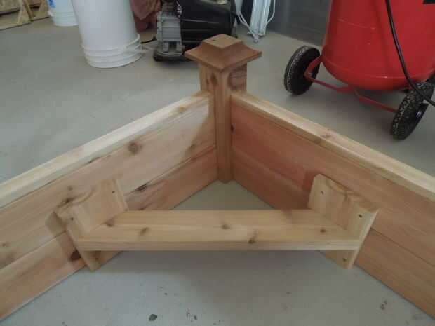 Para instalar la Cruz llaves posición en la esquina con las placas de 5/4 ajustados contra los lados de la maceta. Poner cuatro tornillos en cada pieza de cartón ondulado 5/4 en los extremos de la cruceta; uno en cada esquina con dos tornillos en la pieza del lado inferior y dos tornillos en la pieza de la parte superior (ver foto 2). Cada plantador debe tener un total de dos soportes transversales a cada uno en las esquinas opuestas.
