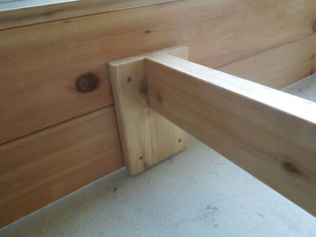 Por último, llevar un par extra de 8 1/4 de pulgada pedazos de 5/4 Junta y fijar en el interior de la jardinera de la misma manera como el centro y los soportes transversales lazo (ver foto 5). Los lugares más importantes están en los lados largos de la maceta cerca de las esquinas sin Cruz llaves (ver foto 6). Esto evitará que los dos tableros que componen el lado de la jardinera de la mudanza lejos de uno a