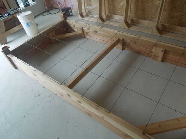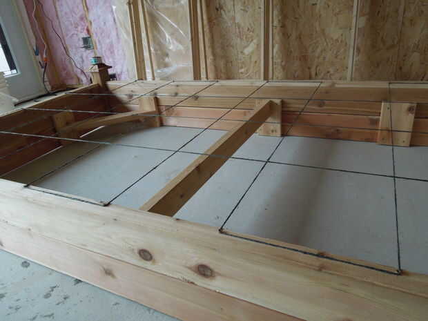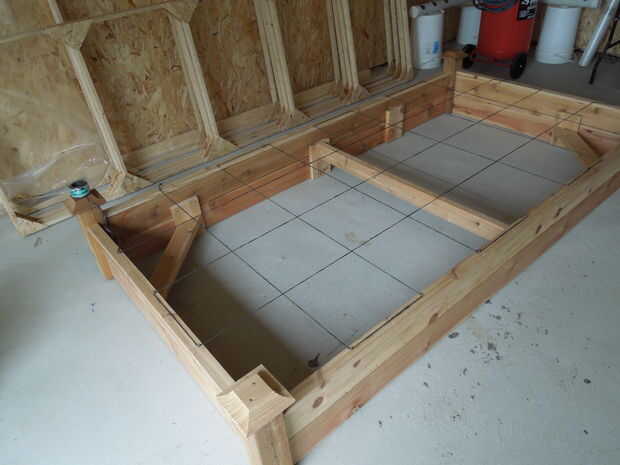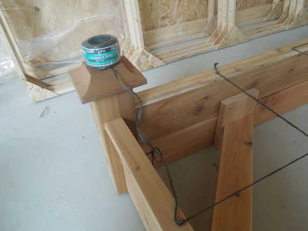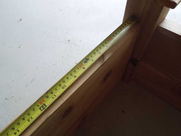 Los tornillos deben colocarse cada 12 pulgadas desde el interior los bordes de la jardinera. Debe no ser conducidos en pero la parte cónica de la cabeza debe ser izquierda expuesta de modo que la guita del yute se puede envolver alrededor de él. Esto es para que la guita del yute puede utilizarse para marcar fuera de una red de 1 pie cuadrado dentro de la maceta para el método de "cultivar un huerto del pie cuadrado" (más sobre esto más adelante).