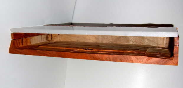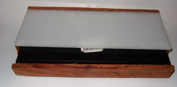 El blanco del PVC fue caliente pegado a la parte superior de la caja de madera.