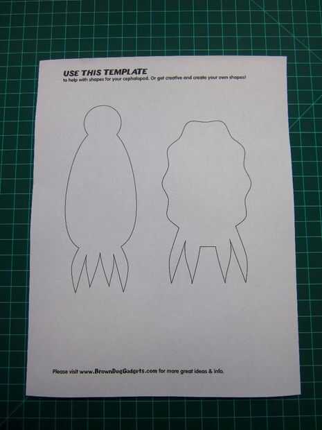 Primero cortar las plantillas de la tercera página del nuestro PDF de cefalópodo, o imprimir directamente sobre el papel grueso de colores.