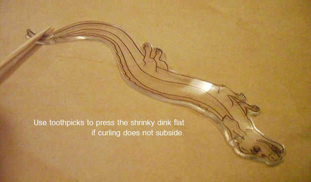 * Mientras esperas para que tu pieza reducir el tamaño, prepárate unos palillos de dientes. En caso de que su plástico no aplana completamente nuevo, usted puede Presione suavemente completamente con palillos de dientes mientras se caliente hasta.