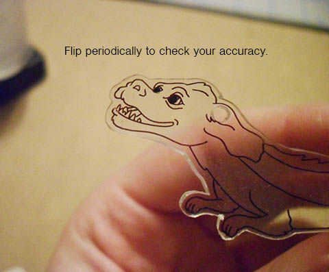 2) flip para comprobar su trabajo. Si usted salió fuera de las líneas, puede limpiar exceso de pintura con pincel otro, ligeramente húmeda, pequeña. También puede esperar hasta que se seque y raspar lejos errores con un palillo de dientes.