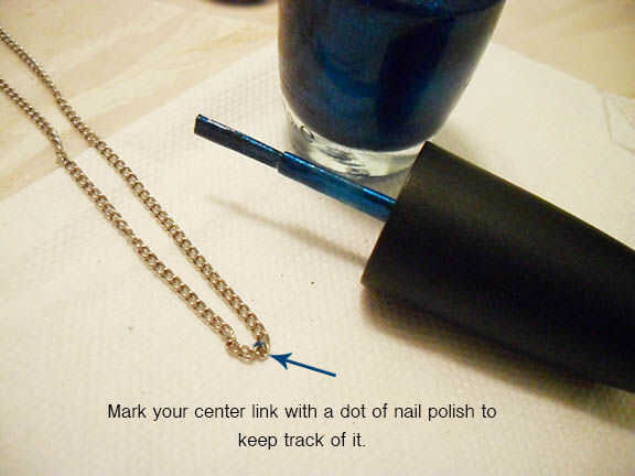 Encontrar un collar de cadena que te gusta la longitud aproximada de. Puesto que la cadena se cortarán, plan para su pieza final colgar 1-1.5 pulgadas más bajos que el actual punto más bajo de la cadena. Ver la primera foto y la última foto para la comparación. ** Cortar esta cadena por la mitad, así que asegúrese de que se trata de una cadena se puede modificar, no es algo tomado de otra pieza de su joyería agradable.