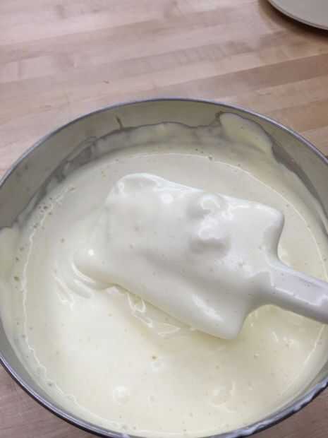 SUAVEMENTE (trabajaron para que los picos... no pierdan la pelusa!) doblar las yemas batidas a las claras, añada la crema y la leche y combinar una vez más.