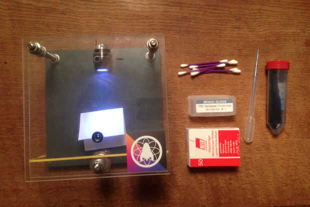 A continuación que hay que preparar la muestra de células de la mejilla. Puede encontrar instrucciones para hacer esto en todo el internet (no inventar). Azul de metileno es un colorante que fue desarrollado para su uso en la industria textil en el siglo XIX, entonces más adelante encontrado tienen propiedades medicinales y también como colorante histológico. Usted puede encontrar fácilmente en tiendas de animales venta de suministros de acuario donde se vende como desinfectante y fungicida/parásitos para el tratamiento de peces enfermos. Usted debe ser capaz de encontrar los portaobjetos y cubreobjetos en ebay.