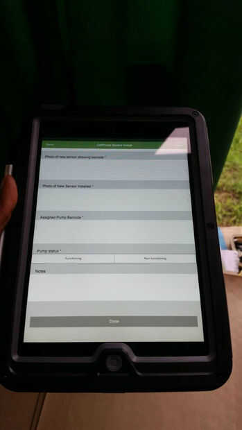 Cuando llegar al sitio abra iForm en el iPad y encontrar la forma 'CellPump Sensor Install'. Este formulario debe completarse para capturar información sobre las actividades que tuvieron lugar.