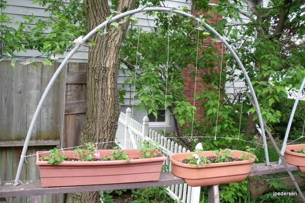 Los cuadros con las flores son mi esposa y yo hicimos el verano pasado. Nos gusta de la gloria de la mañana así que es perfecto para ellos, pueden plantar otras flores (Impatiens) para añadir algunos colores esperando la gloria de la mañana subir.