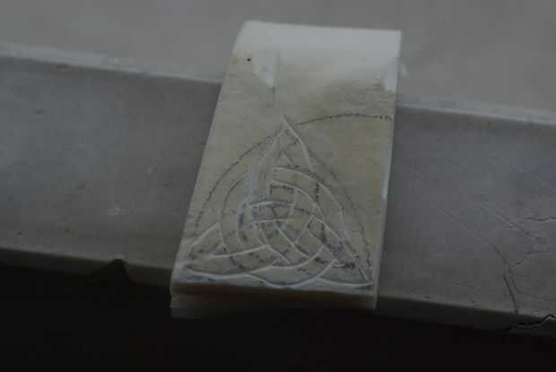 Con la broca cónica de Dremel (cortador de alta velocidad n. 118) pasé en las líneas de lápiz para marcar el dibujo.