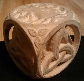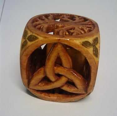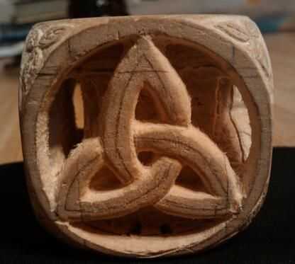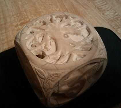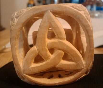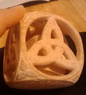 Entonces cuatro de las caras talladas en la Triquetra. Los otros dos extremos fueron tallados en el árbol de la vida. Todos los lados fueron tallados al grueso que todas las paredes que quería. Entonces comenzó la talla frustrante en el interior del bloque. Mantuve un lado atado para no tener que perseguir el interior bloque alrededor de conseguir el tamaño que quería. Cuando estaba bastante cerca, talló el último lado del bloque interno de la pared de la última. Luego persiguió el bloque interno alrededor de talla tratando de hacer el cubo interno incluso en todos los lados.