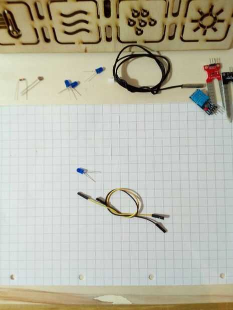 - Prepare el sensor NTC con un resistor de 10 K como lo hicimos para los sensores de luz. Puede utilizar un conector macho para soldar el resistor, como se muestra en la figura