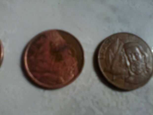 Esta batería tiene un efecto de decoloración en sus monedas, como se puede ver como se convirtió en la moneda de mi país después de tres minutos. No sé si es una reacción química con el ácido o un efecto de electrochapado. El más largo, el más claro la moneda.