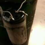 Alambre hasta el condensador envolviendo los cables o les soldadura y coloque los cables en el agua. Luego, tape el condensador a la taza o recipiente. Lo genial del condensador es que mientras está en el agua, incluso en la oscuridad total, impide que el hidrógeno y el oxígeno que recombinan en agua manteniendo la electricidad cuando se recombinan los dos en su lugar.