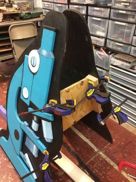 La mecánica de cómo funcionaría el agujero fue establecida solamente libremente durante el proceso de diseño, y muchos elementos de esta sección llegaron a existir según sea necesario y con poca precisión. El ángulo de la rampa se determinó por lo superficial podríamos ajustar la tronzadora y la pieza que une las juntas del dos microscopio es sólo un trapezoide que "parecía bueno" nos estábamos construyendo.