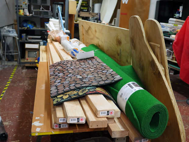 un campo de golf portátil fijado mis hijos y diseñado y construido para guerrilla improvisada juegos en demanda - cualquier parque, cualquier momento.Suministros incluyen cerca de 30 hojas pequeñas de fieltros y 18 hojas de fieltro blanco llano y tac