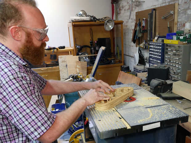 Los obstáculos fueron creados usando dos capas de 3/4" madera contrachapada, apilados. Usando pegamento para madera resistente al agua y un puñetas todo de un montón de pinzas, emparejó para arriba como piezas y les pegan. Después de secar durante la noche, utilizamos un router madera para redondear los bordes de todos los lados superiores de las piezas. Fue útil para el arte de vector Verifique la orientación de las piezas que se enrutó el lado correcto de la referencia.