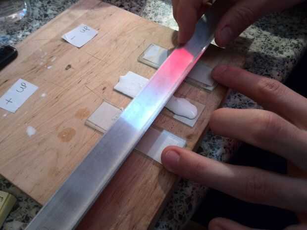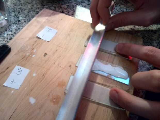El conductor hacia arriba la placa sin embargo va a ser recubierto de dióxido de titanio. Primero toma uno de los platos y vierta un poco de agua. A continuación, empezar a agregar un poco de dióxido de titanio en el agua, revolviendo con frecuencia. Usted desea eliminar todos los terrones del dióxido de titanio. Sabe usted que tiene la consistencia adecuada cuando el líquido se vuelven casi un goo.