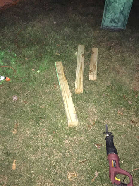 Corte de 2 pulgadas x 4 piezas de pies de madera en secciones de 1 ft. Estas se utilizarán para ayudar a montar el frente y los lados de las columnas. Utilizado para la parte superior y otra para la parte inferior 1 hasta un total de 4 por columna. Extra quedará.