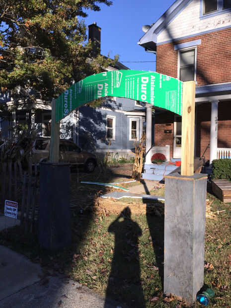 nuestro refugio en el zoológico local tendrá una entrada! Decidí construir una puerta de cementerio. Quería añadir más características, como una valla, pero no tengo suficiente tiempo para eso. Este año, constará de dos pilares y un arco.Construí con