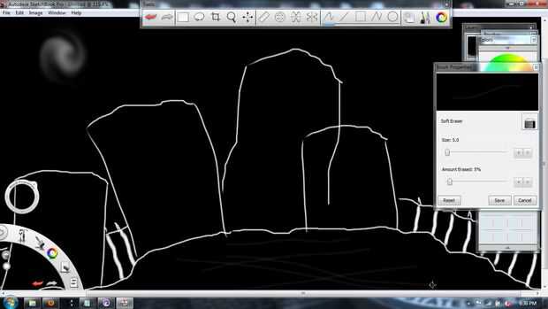 Usar criss-cruzar golpes de borrador en la colina para darle cierta textura. Me usd el borrador como un experimento como se opusieron a utilizar el lápiz o pincel.