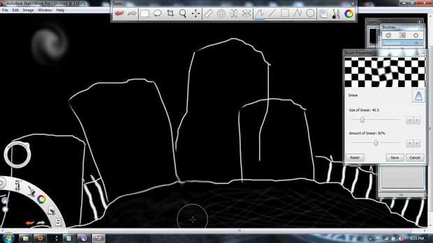 Luego seleccione la herramienta de frotis otra vez y tienen el tamaño en 40.5 y la cantidad al 50%. Deslizar hacia adelante y hacia atrás un par de veces sobre las líneas de la colina para darles profundidad.