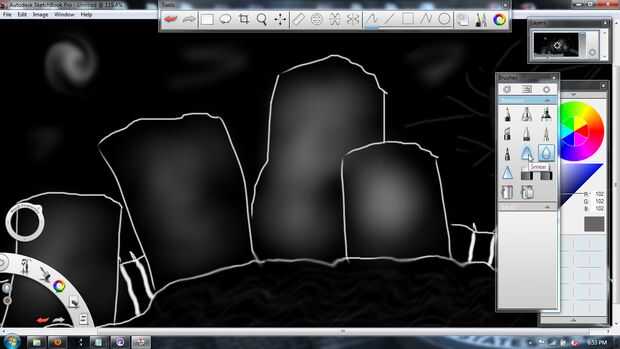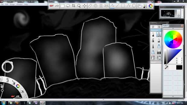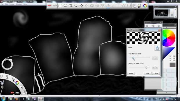 Ahora seleccione la herramienta de frotis y establezca el tamaño en unos 31 y la cantidad de 85%; luego Unte las líneas que dibujó anteriormente por las nubes hasta mi aspecto deseado.