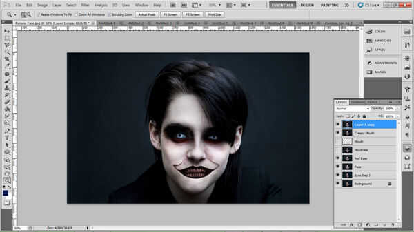 4. combinar las capas del ojo con la cara de la persona.