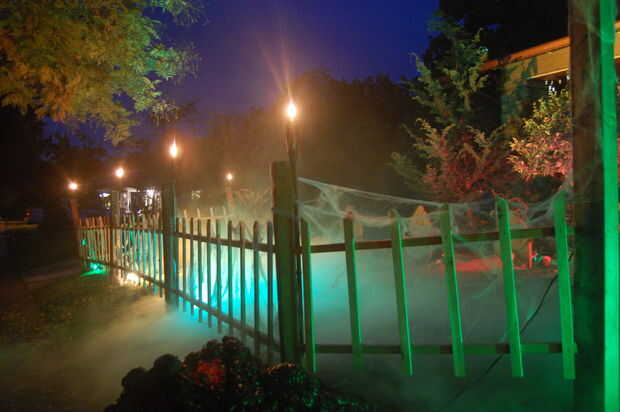 Cómo construir una cerca del cementerio para agregar algunos efectos dramáticos a su patio delantero.Se necesita:-tubos de pvc de 1/2"-tableros de madera-pistola de pegamento-7/8 broca de pala-remates de la cerca: tapa u otros elementos decorativos d