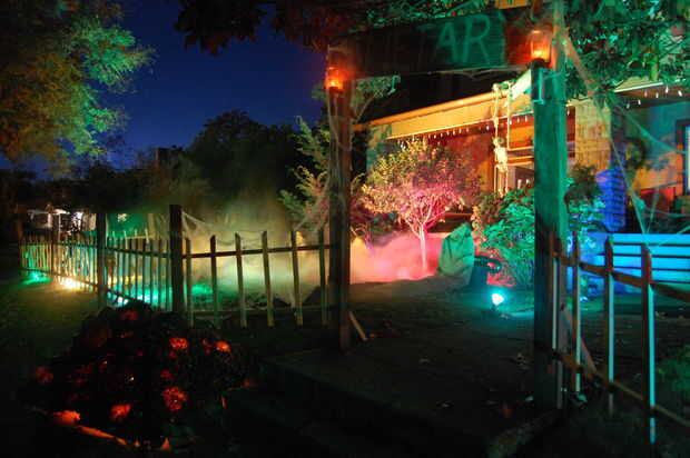 después de ser la vergüenza de nuestra calle el año pasado en cuanto a decoraciones de Halloween, comprometió a hacer tres cosas este año:1. comienzo temprano!2. ser ahorrativo pero impresionante!3. aventajar los adornos comprados en tiendas grandes