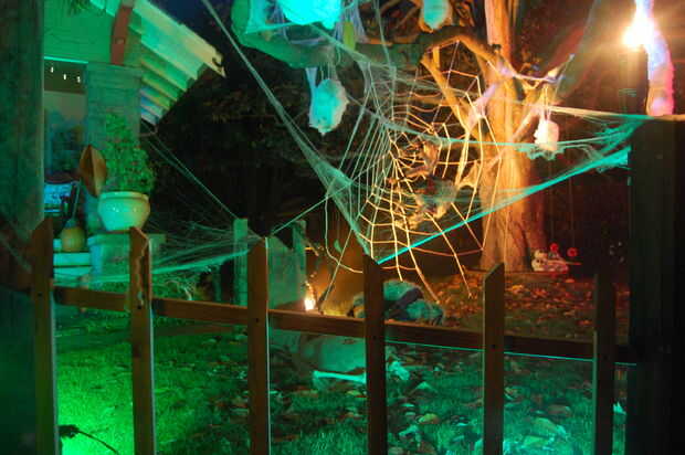 después de ser la vergüenza de nuestra calle el año pasado en cuanto a decoraciones de Halloween, comprometió a hacer tres cosas este año:1. comienzo temprano!2. ser ahorrativo pero impresionante!3. aventajar los adornos comprados en tiendas grandes