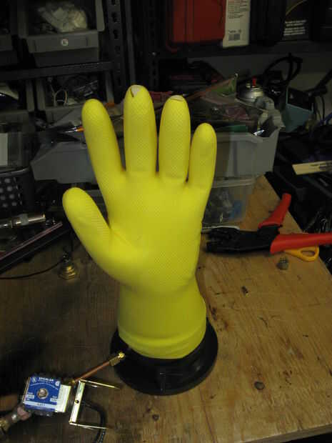 La mano es propulsada por aire comprimido y explota hacia arriba cuando se ha disparado.