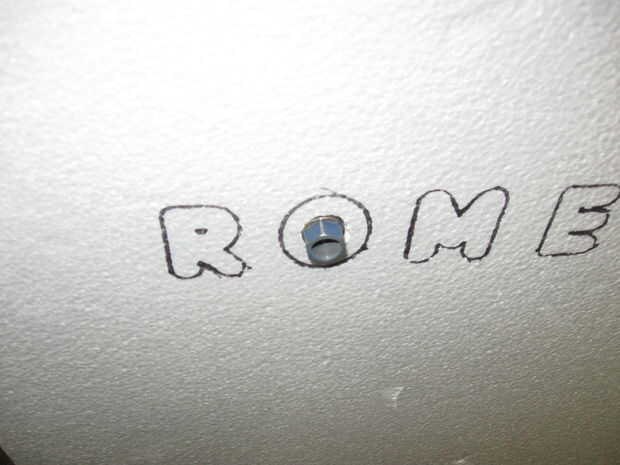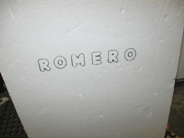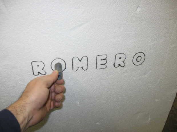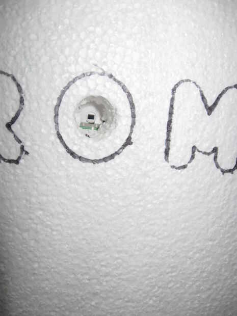El centro de la primera "O" se quita usando un serrucho de 3/4 de pulgada para crear un orificio para el elemento de detección de movimiento.