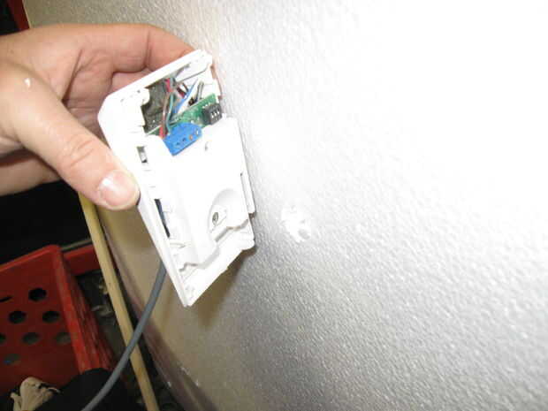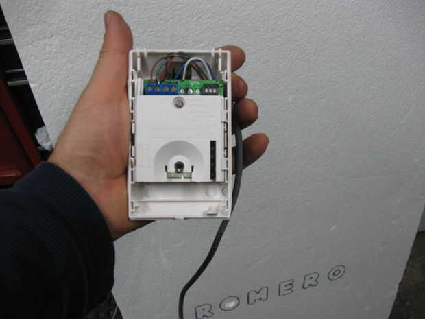 El sensor de movimiento se alinea para arriba con el agujero en la piedra sepulcral para dar una idea de la colocación óptima, entonces se sustituye la cubierta del lente y el montaje del sensor se sujeta en su lugar con cinta adhesiva.