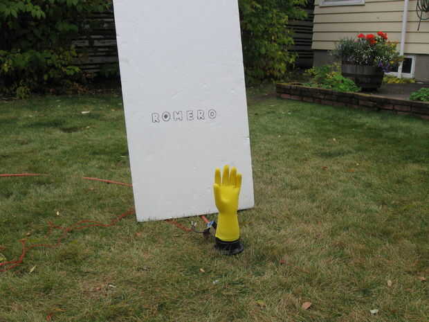 Esencialmente cuando se detecte movimiento que el gatillo permite la mano desplegar hacia arriba, creando la ilusión de que algo está cavando hacia fuera de la tumba. En condiciones de luz bajo que el guante amarillo refleja suficiente luz y deben asustar o asustar a los transeúntes, también hay un silbido siniestro como escapes de aire...