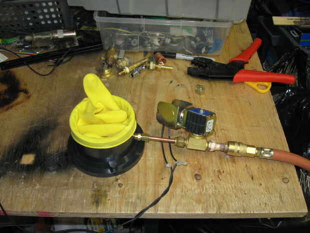 La fuente de alimentación se une en el NO contacto del relé y el contacto común del relé está conectados a un cable de la válvula solenoide. El otro cable de la válvula solenoide está conectado a tierra.