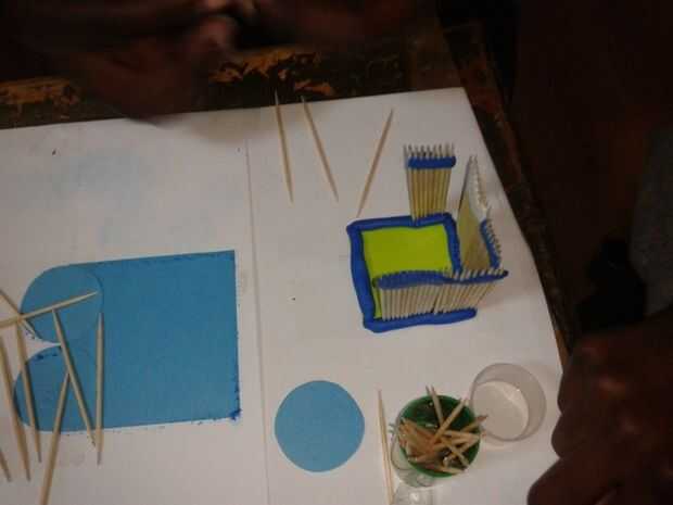Pegar el se unió a por palillos de dientes en el sugru en la base (la parte verde es la base de la estructura)
