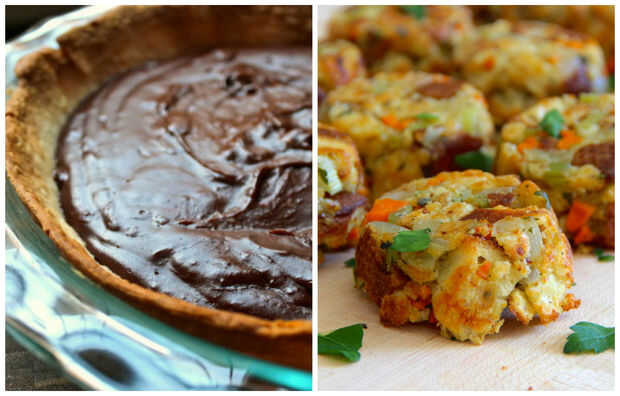 Preparar el relleno como se describe, mezclar todo junto en un recipiente grande. Si haciéndolo en muffins, sólo deja la mezcla en el recipiente durante la noche y lo coloca en las latas del mollete de la mañana. Si desea regular relleno viejo, guarde en una cazuela de 9 x 13 en la nevera durante la noche.