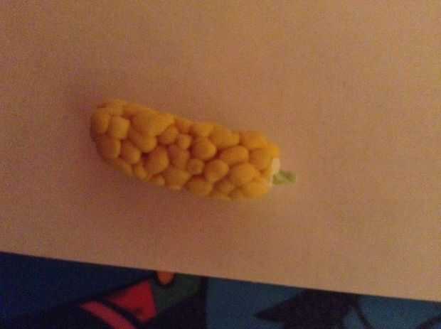 Palo las bolas amarillas pequeñas sobre la base blanca (si puede, trate de poner los más pequeños en la parte superior e inferior para agregar al realismo) ponen en un pequeño tallo verde.