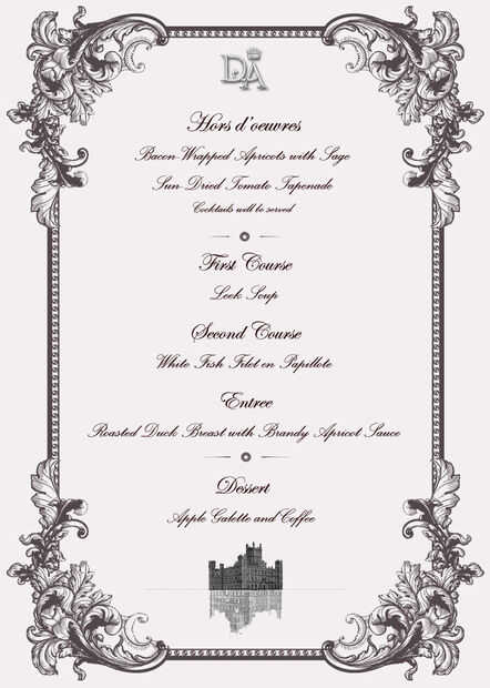 La invitación (hecha en Facebook como un evento cerrado) declaró que tenía una política de puertas abiertas a partir de las 18:30 con la cena que se servirá en 19:30 y el último capítulo de Downton Abbey se transmitirá a las 21:00.
