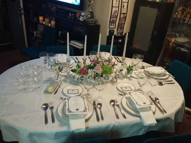 Por desgracia, al final fue sólo nosotros 3 para disfrutar de la fiesta. Algunos de los otros invitados no pudieron venir por compromisos familiares, compromisos militares, enfermedad o no hubieran cogido lo suficiente pero en la serie que hasta la fecha. Estaba bien. Cenas de Downton comenzó conmigo, Dave y Trevor (el esposo) era tipo de dulce que debe terminar con nosotros también.