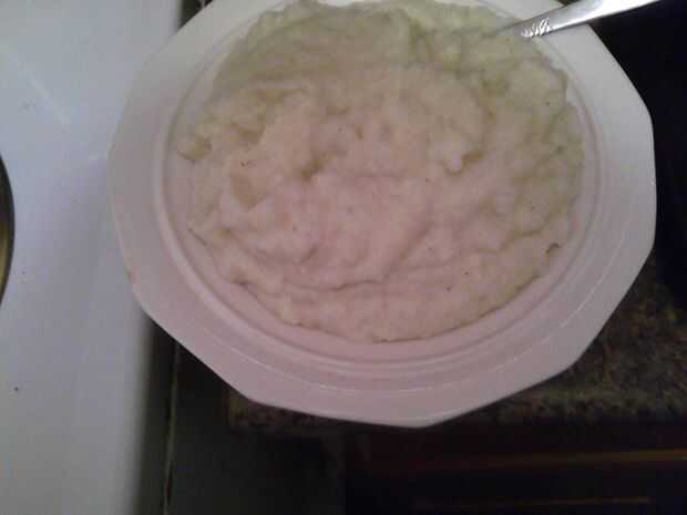 Cuando estén tiernos, escurrir el agua, agregar mantequilla, leche, crema agria y ajo y empezar a amasar todo junto hasta que estén esponjosa y agradable. No agregue demasiada leche al principio. Usted no quiere hacer las patatas demasiado que moquea. Si el puré está demasiado espesa, puede agregar más leche para que se disipe hasta que tenga la consistencia deseada.