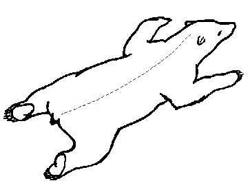 Estoy usando el corte ventral como quisiera tener la opción de utilizar la piel para un montaje de taxidermia en una fecha posterior. Para un corte dorsal se utilizaría el mismo proceso como se describe aquí sólo de la parte posterior con el animal en su estómago.
