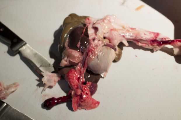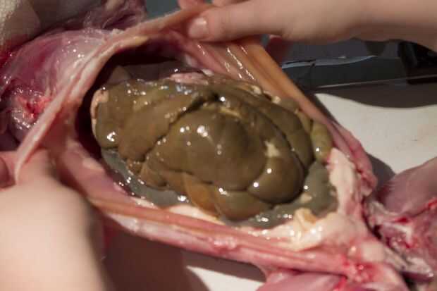 Echar un vistazo a los órganos para detectar signos de mala salud, tales como marcas onduladas o manchas en el hígado o los riñones.