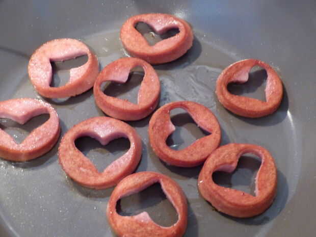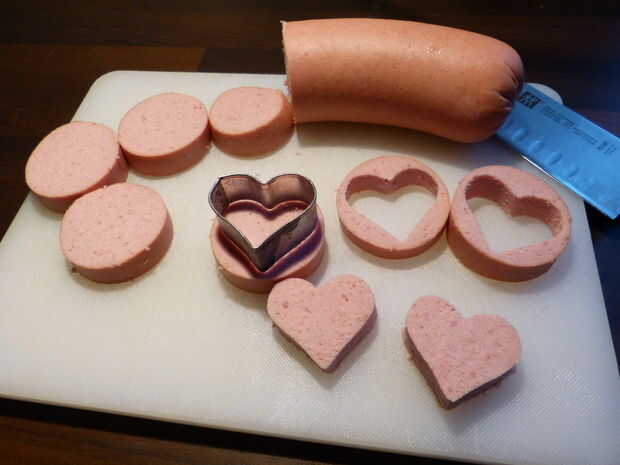 - cortar la salchicha en 1,5 cm / 0, rebanadas gruesas de 6 en