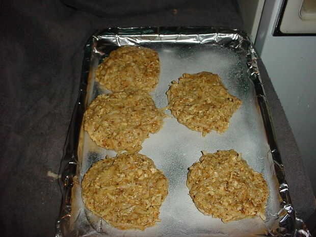 preparar una bandeja con papel de hornear y aerosol, formar la mezcla de pollo y patatas empanadas tamaño de hamburguesa o un poco más grande para los apetitos más grandes, más pequeñas para apetitos más pequeños, los ponen en la bandeja preparada y colocar en un horno de 350 por 30 minutos y luego 3-5 minutos en el gratinador para dorar la parte superior muy bien. Por supuesto puede cacerola freír en un poco de aceite de oliva o aceite de cualquier cocina te use hasta que dorado y crujiente por ambos lados