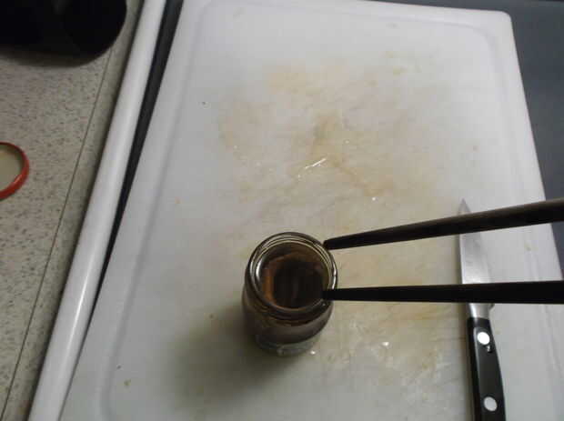 8) 2 ó 3 anchoas directamente de la jarra / can. Me gusta el frasco. Y como este material a menudo bastante que las sobras no "convierten" en la nevera. A veces se deja el aceite en los geles de tarro y todo lo que tienes que hacer, cerrado firmemente, jar se sientan en un agua a temperatura ambiente durante unos minutos y se vuelve al petróleo.